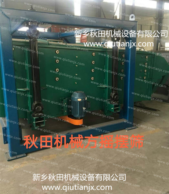 通過方型精密搖擺篩將振動器發(fā)生振動加搖擺運動,傳至篩面,從而使物料在篩機前部迅速分散,從而達(dá)到篩分之目的。